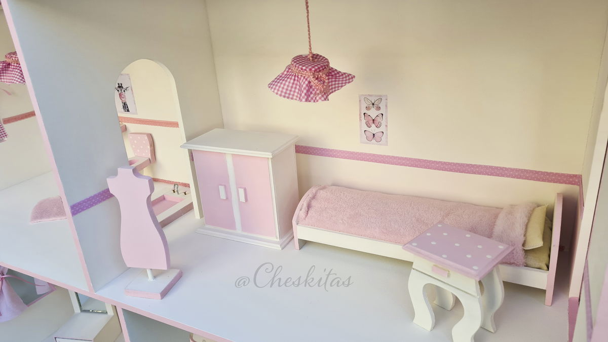-Habitación Barbie (cama, placard, perchero y mesita de luz).